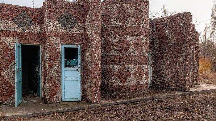 Постепенно мы подходим к гордости пансионата «Сельмашевец» — это пляж на берегу озера с мелким и нежным песком. Купание и солнечные ванны были и остаются главным развлечением на Иссык-Кульских берегах летом, а водная горка добавляла яркости и разнообразия в летние дни. Но сейчас, заброшенная и заросшая, она кажется загадочным артефактом из прошлого.