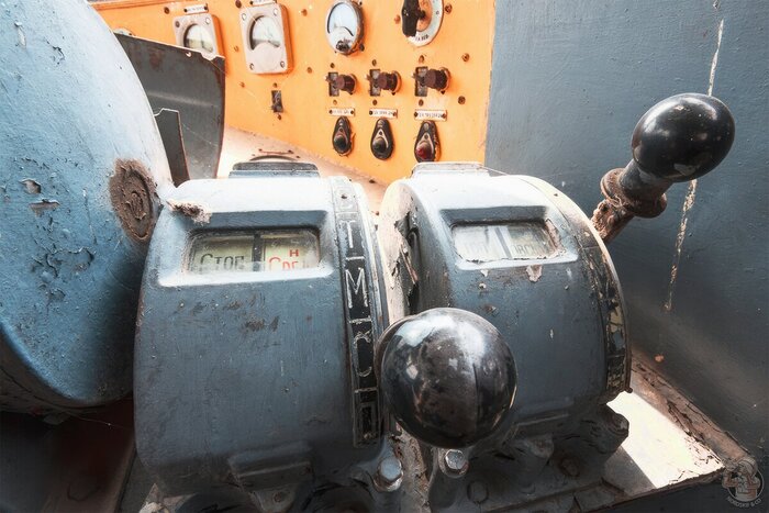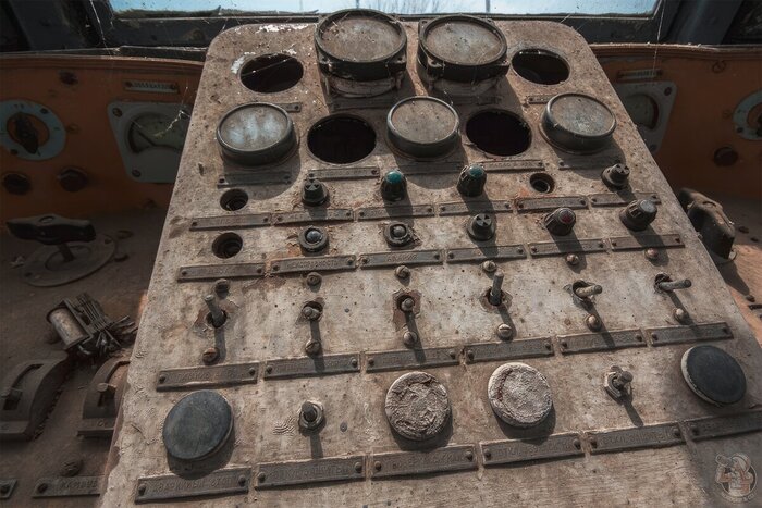 Например, в этот раз я сфотографировал сохранившиеся шильдики и узнал, что плавучий кран доставили сюда за три тысячи километра из города Бор.
