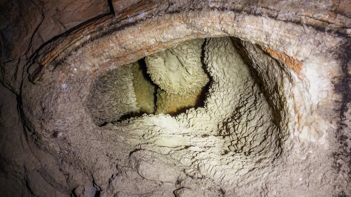 Начать хочу с того, что под землёй обитает семейство голубей. Сфотографировать их не вышло, но на видео (простите, есть только на дзене, ахтунг) они запечатлены. Стоило большого труда, наконец-то выгнать их из штольни, так как напуганные птицы настойчиво улетали дальше в недра горы и могли там остаться навсегда, не найдя дороги обратно...
