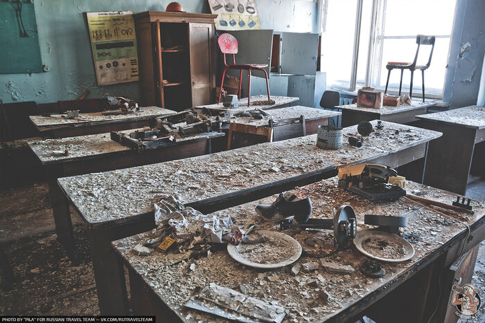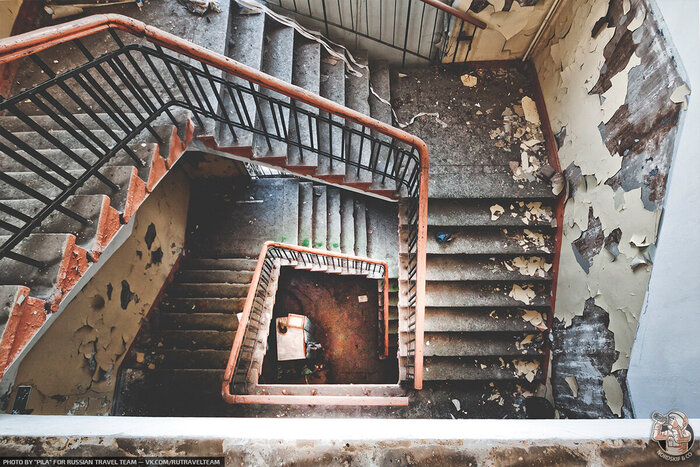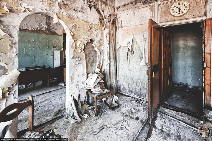 Но по слою пыли и отвалившейся штукатурки всё равно нельзя сказать точно, как давно стала протекать крыша и как давно в помещениям перестали убираться. На скорость разрушения заброшенных зданий влияет уж слишком много переменных факторов.
