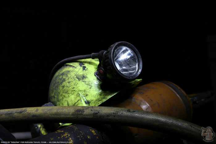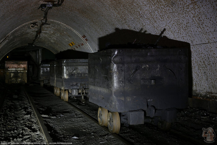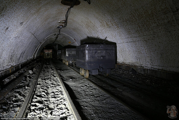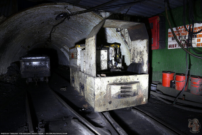Где-то сухо, но при этом тупики. К сожалению вентиляции, тоже нет уже и мы очень боимся нарваться на скопление метана. На входе лежали «самоспасатели» и мы взяли парочку на всякий случай. Побродив где-то часа 3 мы идем на выход. Весь тоннель также был уставлен вагонетками и мотовозами.