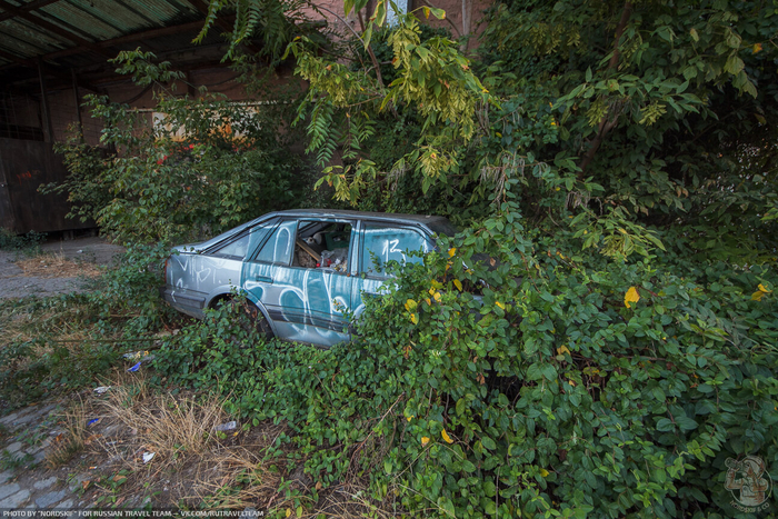 Не только стены. Даже заброшенной тачки в зарослях кустов и той досталась порция краски.