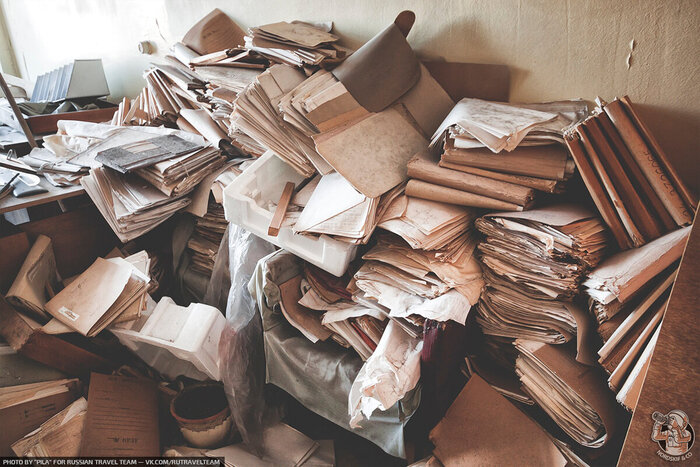 Видимо, влажность по-разному проникала в помещения. Кое-каким комнатам повезло куда больше и документация почти не пострадала. Её ещё можно было бы спасти, но кто будет заниматься такими бесполезными с точки зрения большинства людей вещами?
