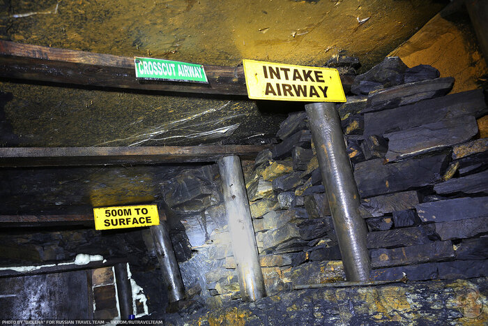 Оказавшись на сухом участке, мы бодро двинулись как можно дальше от входа. Все очень похоже на шахты, которые есть у нас в России. Вот только таблички на английском выдают в этих заброшенных подземельях «английские корни».