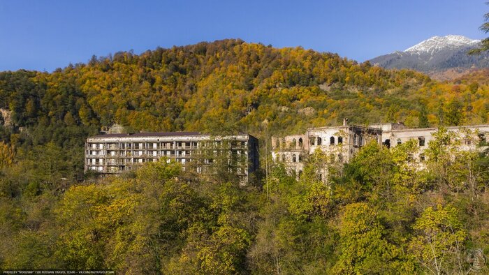 Но в остальном — полная разруха. Состояние заброшенных зданий здесь ужасное, даже по абхазским меркам.