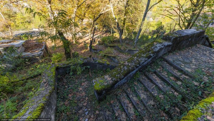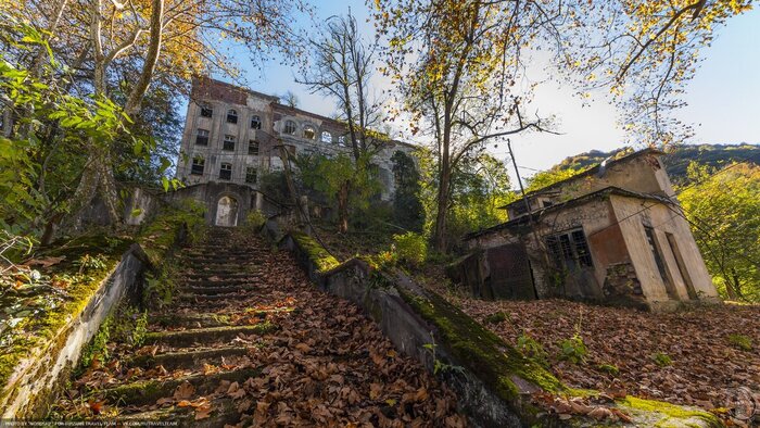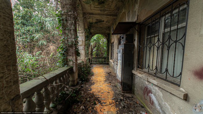 Санаторий имени Орджоникидзе — это самый известный заброшенный объект во всём Сочи, а возможно и на всём Черноморском побережье. Долгое время его территория была открытой, поэтому, среди обветшавших зданий, постоянно гуляло множество туристов, что без особых успехов пытались заглянуть внутрь, даже не подозревая, что самая интересная (на мой взгляд) часть санатория находится у них под ногами.
