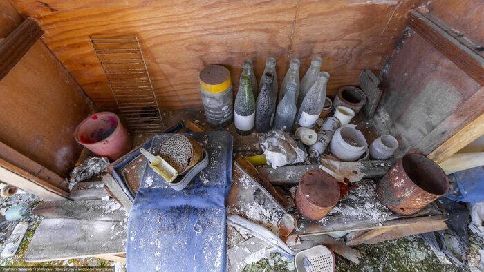 Судя по состоянию убежища, долго искали его только мы. Остальные, захаживали сюда за всяким разным с момента закрытия завода в 2011 году. Впрочем у них был свой, чинный выход через цех. Логично, что спустя 9 лет запустения убежище выглядит подобным образом. Мы честно пытались навести здесь порядок, но когда спустя три часа внешний вид объекта никак не преобразился — бросили это пустое занятие.
