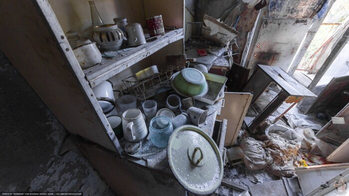 Но самая интересная часть города-призрака — это заброшенные жилые квартиры. Многие из них пустые или завалены мусором, но остальные выглядят лучше, чем в той же Припяти. Всё дело в том, что население города разъезжалось постепенно, и оставшиеся жители забирали самое ценное из соседних квартир, а освободившиеся площади использовали как помойки. Последнее, правда, наблюдалось уже перед тем, как город окончательно опустел.