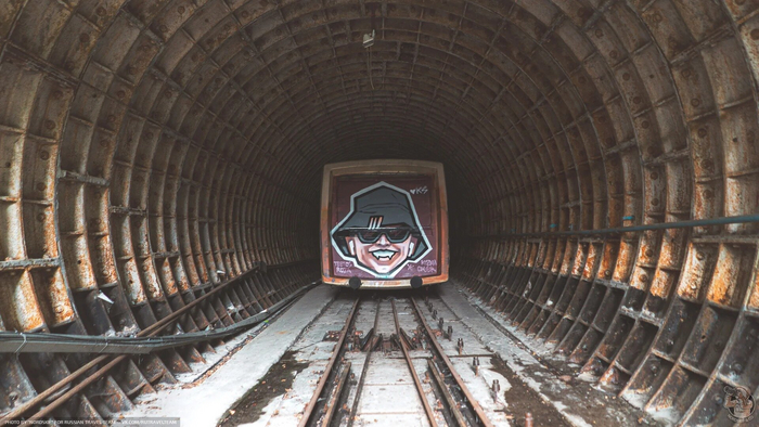 К сожалению, вагончик, стоящий внутри тоннеля тоже, хоть и в меньшей степени пострадал от рук «пачкунов» с баллончиками краски. Такому «творчеству» оправданий нет, уникальные и редкие вагоны безвозвратно испорчены краской.