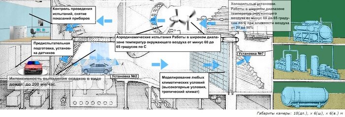 Но вот такое мы явно не ожидали там найти. Перед вами уникальное сооружение, имитирующее различные погодные условия для тестирования автомобиля.