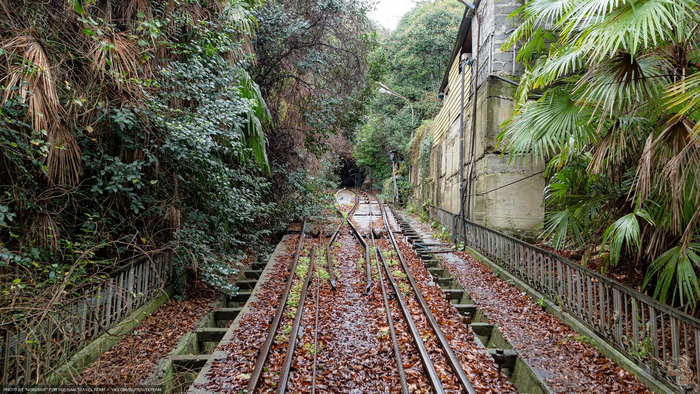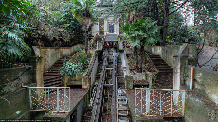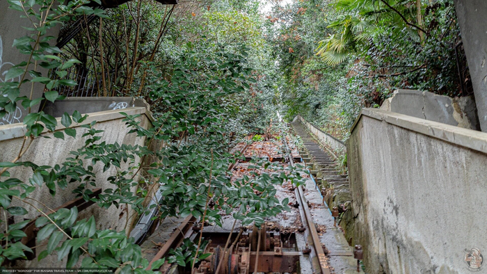 Между тем, мы неспеша дошли до места, которое обычно ускользает от внимания посетителей санатория — верхней станции фуникулёра. Одной из двух веток «сочинского метро».