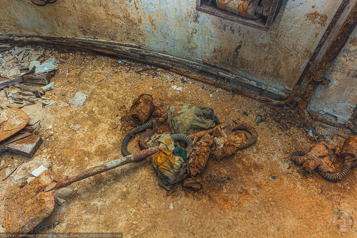 Каски, дозиметры, газоанализаторы, резиновые бахилы от костюма химзащиты (в качестве опции) и группа контроля на поверхности — всё как положено.