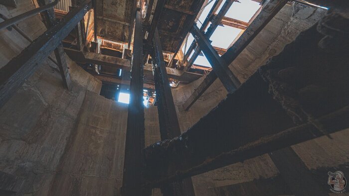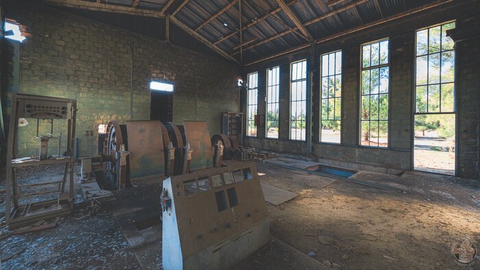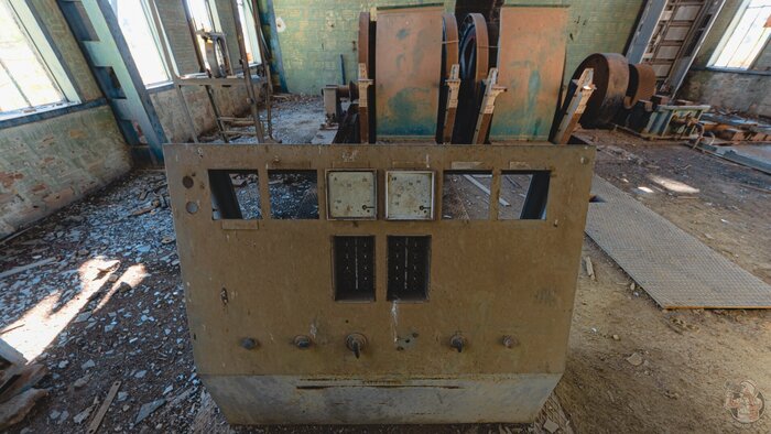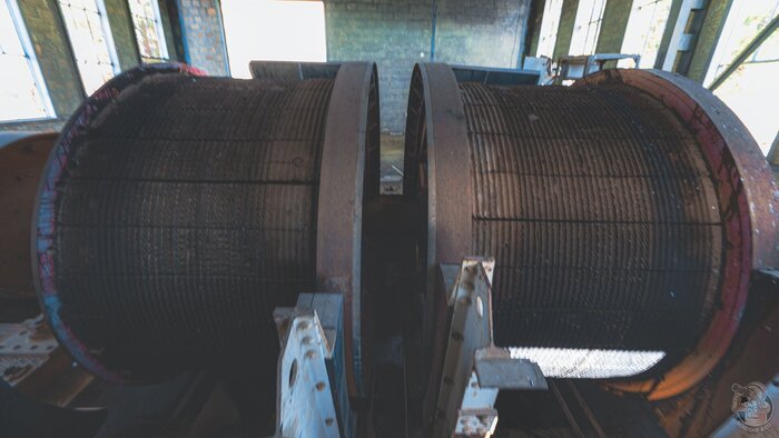 О тех заброшенных посёлках, я как-нибудь расскажу отдельно... А пока давайте заглянем в зал подъёмных машин, где пылятся огромные ржавые механизмы.