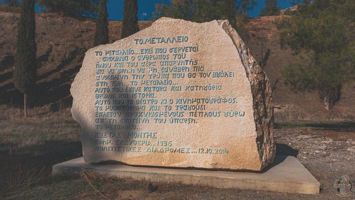 Перед входом в подземелья — памятный камень. Автоматические переводчики не дали мне вменяемый текст, так что если среди читателей есть те, кто знает греческий язык, буду признателен хотя бы за примерный перевод.