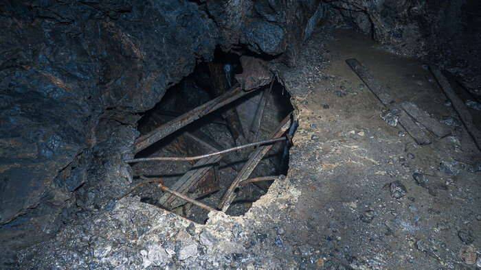 "Загадочная дырка" в бетонном полу штрека, действительно привела нас в весьма любопытную часть рудника.
