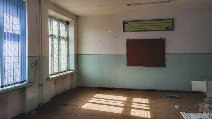 Ныряю в выбитое окно и оказываюсь в одной из учебных комнат. Внутри пустовато, но нет ни мусора, ни граффити — начало определённо хорошее, учитывая ту лёгкость, с которой получилось сюда попасть.