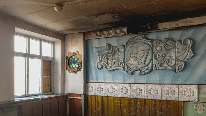 А вот актовый зал приятно удивил — он любопытно оформлен и, несомненно, был весьма уютным в те годы, когда ПТУ ещё работало.