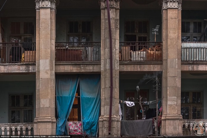 И мы снова в Советском Городе-Курорте Цхалтубо, но сегодня мы будем бродить не по заброшенным санаториям и пансионатам, а заглянем в санаторий «Железнодорожник», что населяют вынужденные переселенцы.