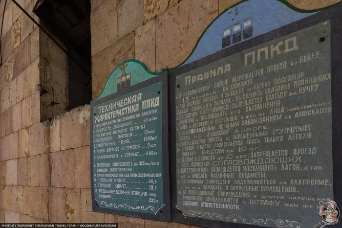 На стене технические характеристики ТКД и правила пользования канатной дорогой.