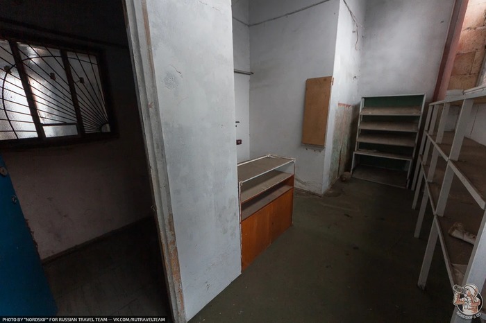 Внутри кирпичного АБК размещались кабинеты, склады, раздевалки, а также небольшой актовый зал руины, которого вы можете видеть на фотографии ниже.