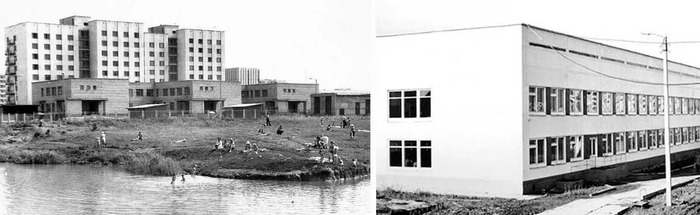 К сожалению, архивных фотографий заводских цехов в интернете найти не удалось. Всё, что есть это малосемейка для работников завода возле озера "Харчок" и заводская поликлиника.