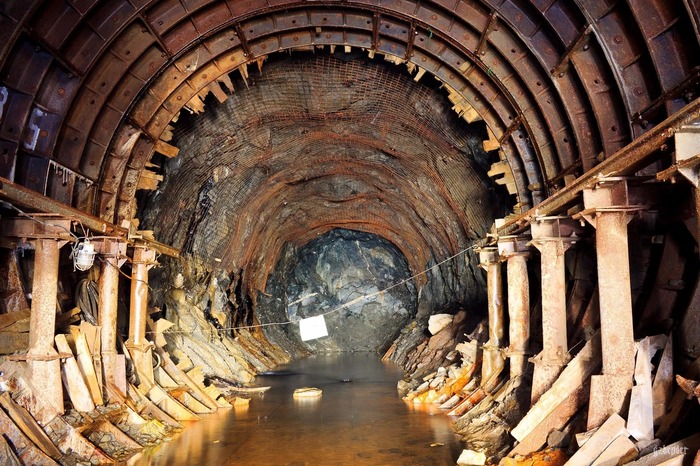 Некоторые тоннели сухие и в них горит временное освещение, другие же приходится освещать фонарями и по щиколотку утонувшие в грязной, маслянистой жиже.