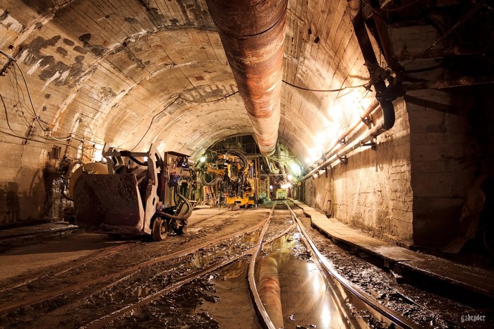 Рельсы в действующую часть выработки, там всё ещё что-то грохочет, добыча идёт, но туда нас пускать наотрез отказались.