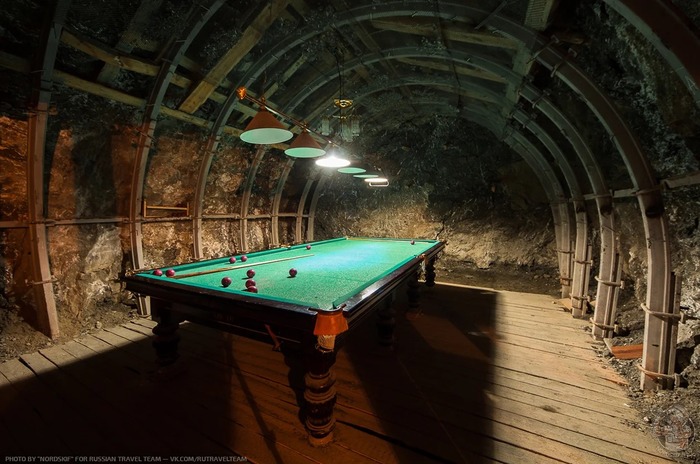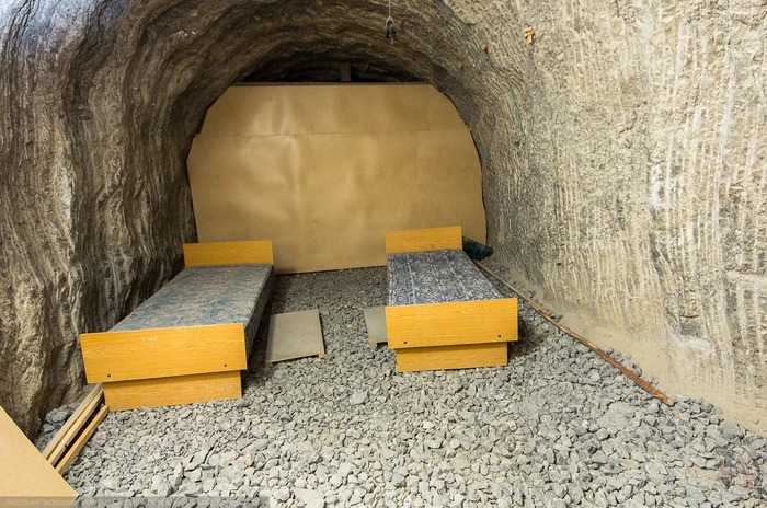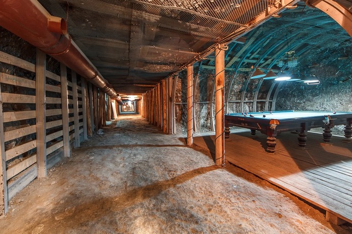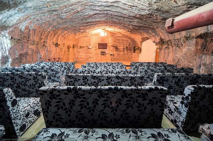 А вот и культурная часть штольни. Её обустроили под спелеолечебницу и организовали некоторый досуг.