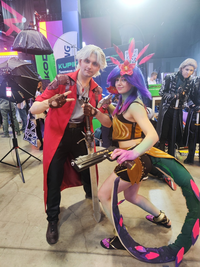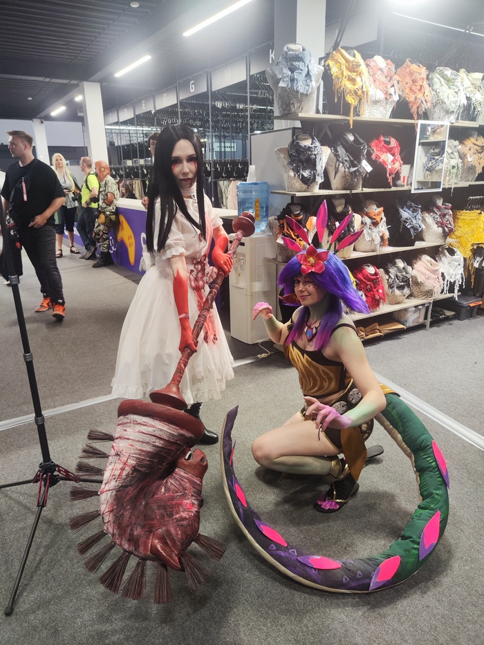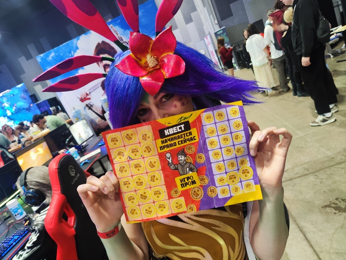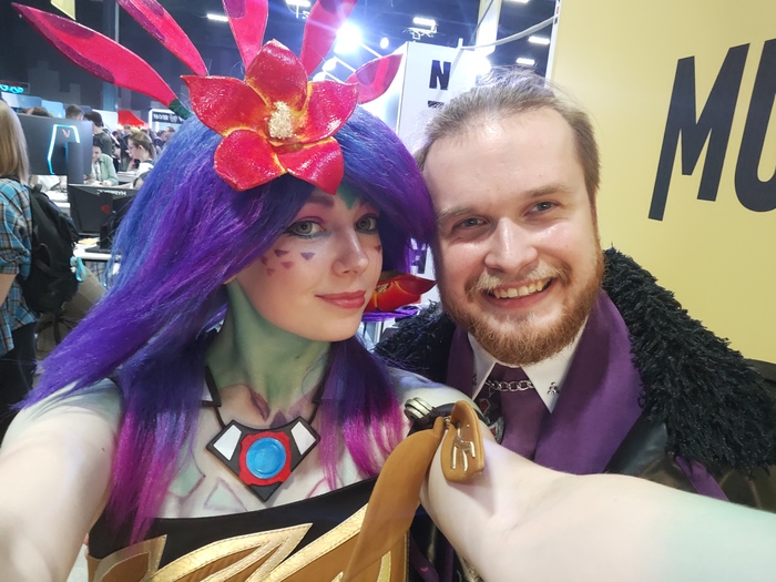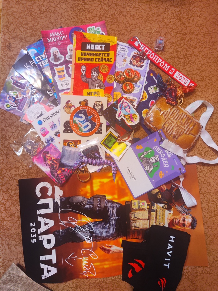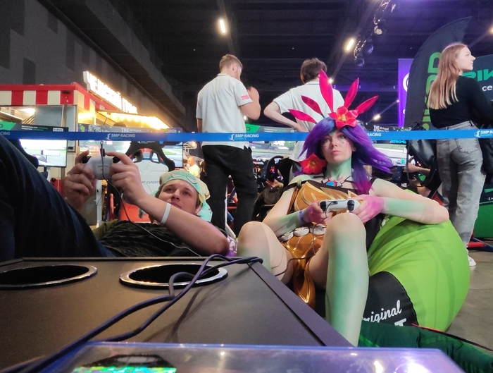 Сам фестиваль организован прекрасно: удобная гримерка для косплееров, много активностей, отличные выступления косплееров и спикеров. В этом году даже прошли с Karl Mienev весь квест и налутали много всяких подарков, наклеечек ( на каком-то стенде, уже не вспомню на каком, дали наклейки Пикабу ахах) и прочего - всё как я люблю. А так же затестили новинки игр, и поиграли в старенькие - Мортал Комбат и различные ретро игры. Так же Костя попробовал себя в озвучке :)