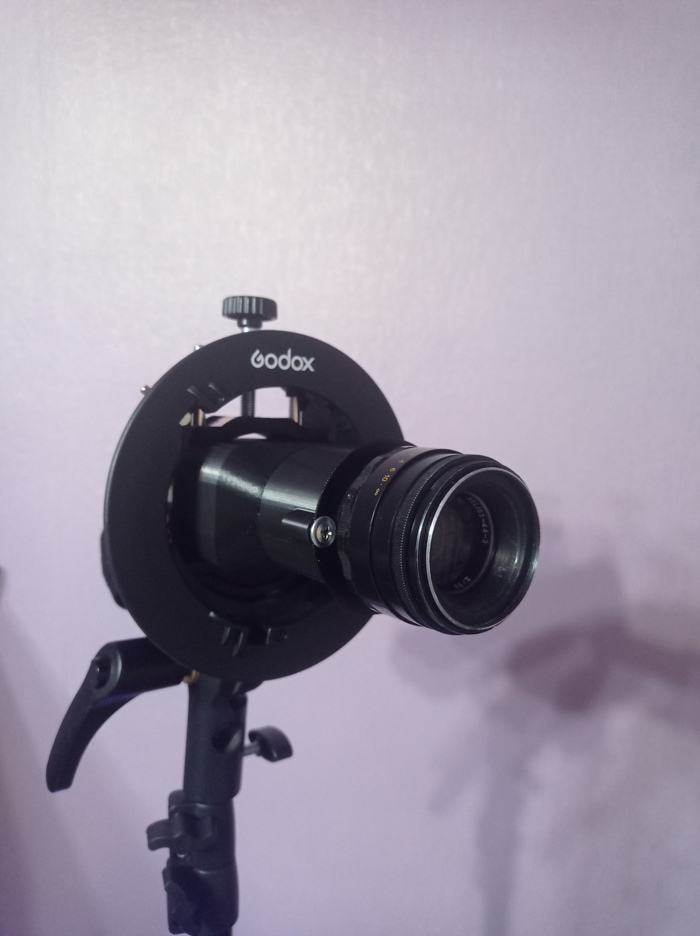 Инженер из меня так себе (диплом всё врёт), но я рассудил так: проектор - это фотоаппарат наоборот: свет должен идти от маски, через объектив и проецироваться на поверхность. Значит нужен корпус, в который будет вставляться вспышка. В корпусе прорезь под маски. Расстояние от маски до объектива = рабочий отрезок. И нужно придумать крепление под объектив. В итоге, через несколько попыток, корпус напечатан на 3Д-принтере, для крепления объектива взято переходное кольцо с М42 на байонет сони (подойдёт любой переходник) и самое доступное в мире стекло - Гелиос 44-2.