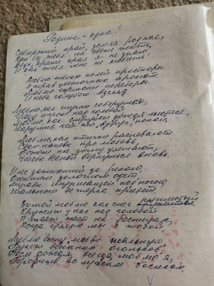 К сожалению, время не щадит никого, и самой Надежды Бундюк уже нет с нами. А её дочь давно переехала из п.Чебулы. Но она прислала мне несколько стихов, которые так важно были сохранены её матерью. Я решил попробовать сгенерировать на основе этих строк песни при помощи современных программ (SUNO). Это было непросто — я проводил много времени, экспериментируя, но, в конечном итоге, нашёл то, что можно считать результатом.