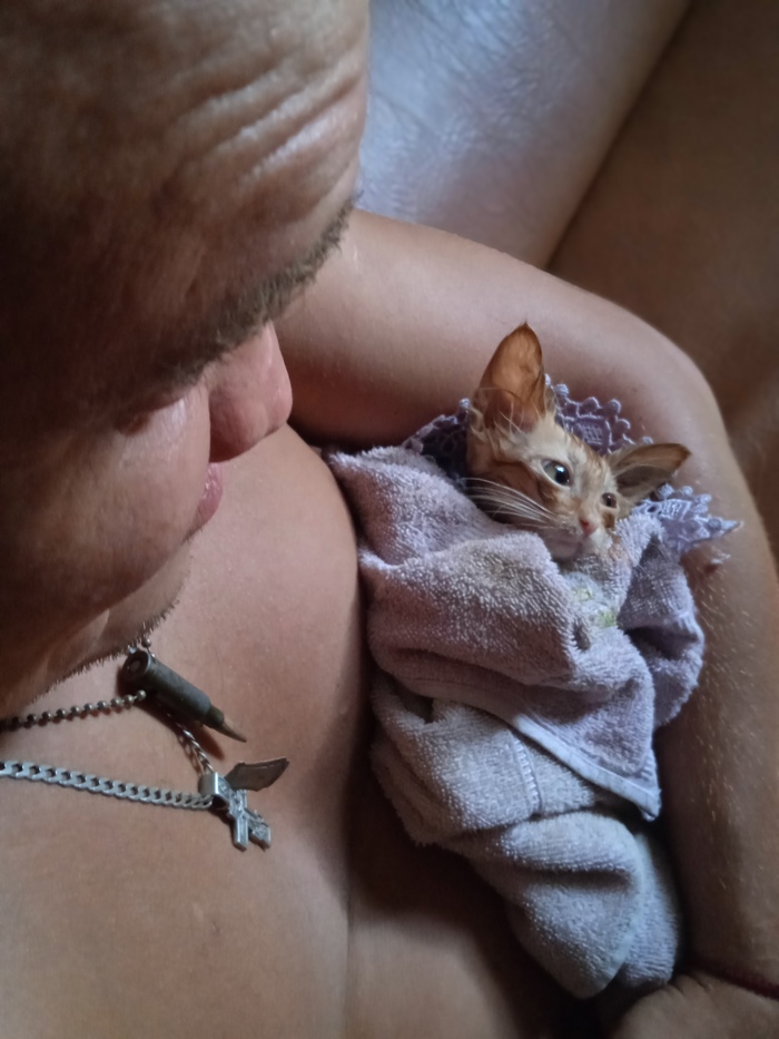 Он второй день спит под вентилятором. Ничего не ест, поим с ложечки.