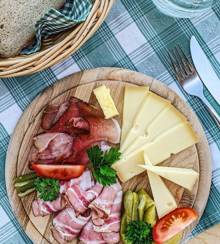 Tiroler Marend — это не имя девушки из Инсбрука, а когда ты приходишь в хижину, а тебе на стол выкладывают деревянную доску, на которой больше жира, чем у троллей на ДТФ. Там и бекон, и копчёная колбаса, и сыр, который воняет, как кроссовки после рок-фестиваля, но ты ешь — и плачешь от счастья. Чёрный хлеб такой, что если им кинуть — можно остановить драку. А рядом — горчица, хрен, шкварки и маринованные огурцы, как у бабки в погребе, только злее.