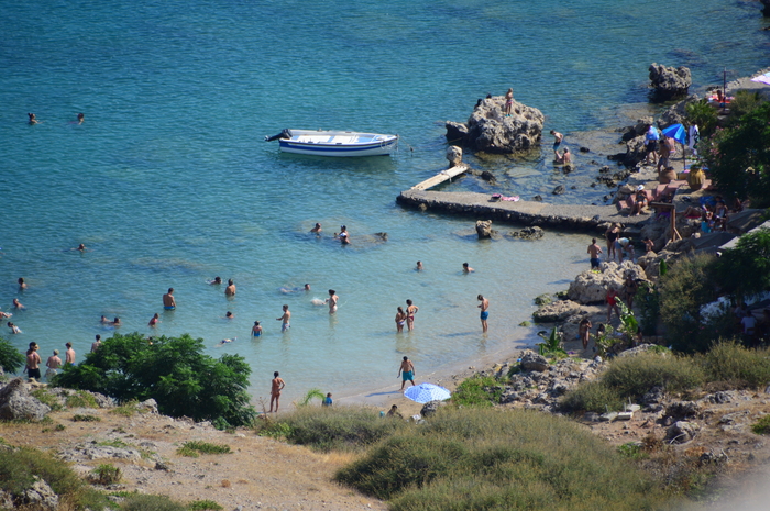 Но, честно, кайф полный: места хватает, вертишься как хочешь — никому не мешаешь. Минус курорта — вокруг пусто, одни скалы и козы, которые смотрят на тебя, как на очередного дурачка.