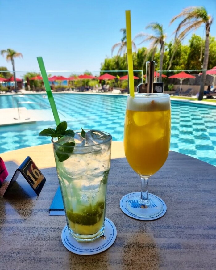 Следующая точка — Esperos Palace Resort & Spa. Курортный филиал гламурной вселенной, где ценник за бокал апероля, кажется, растёт с каждым кубиком льда. По сравнению с предыдущим местом — дороже, но публика настолько унылая, что я невольно вспомнил собрание жильцов в своём поселеии в Вене: там хоть матом ругаются и агрессию проявляют. Пляж пустует, как холодильник холостяка, а все тусуются у бассейнов, уткнувшись в телефоны и глушат апероль, разведённый минеральной водой. По 7 евро за бокал!