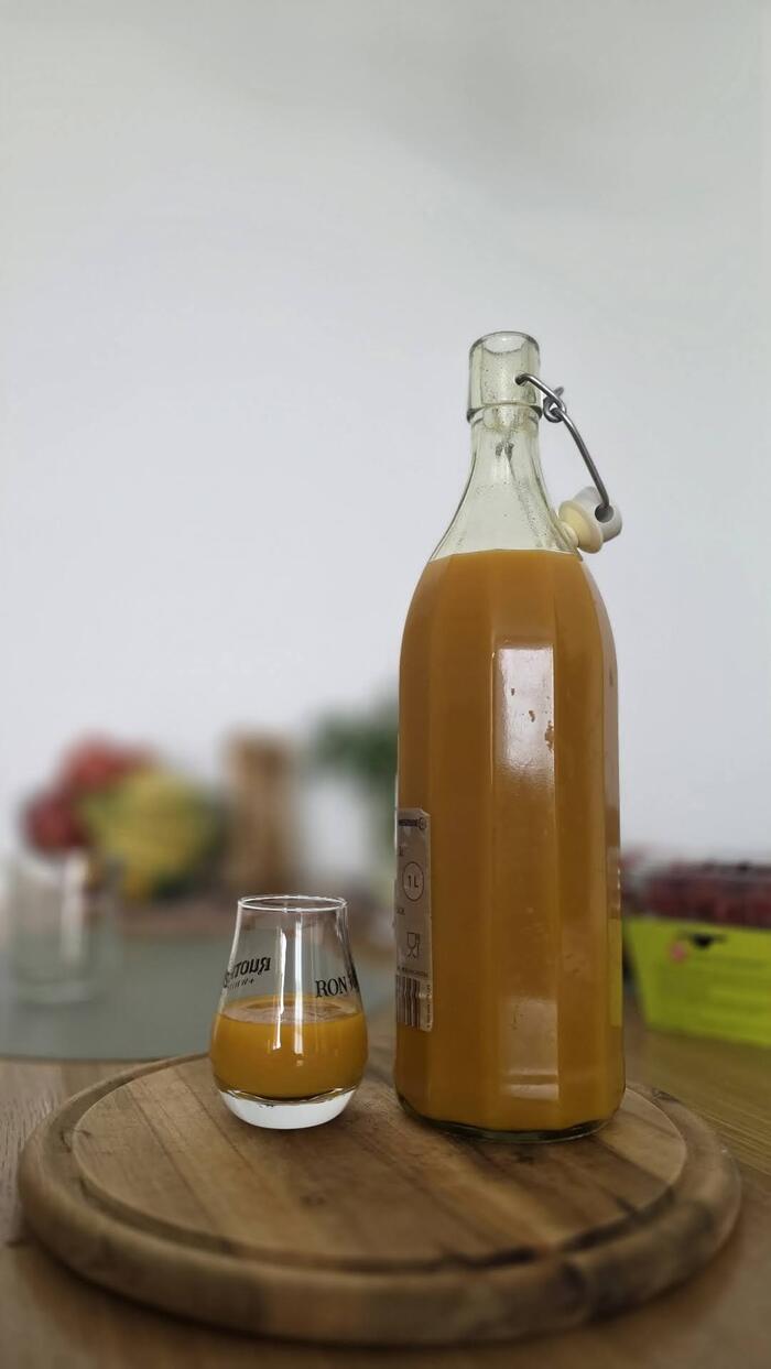Поехали мы на лыжах кататься. Есть тут у нас ледник на 2700 метрах, недалеко от Инсбрука, Stubaier Gletscher называется. Вот туда и поехали. Накатавшись, я взял книгу и пошёл в таверну: выпить, перекусить, отдохнуть. Вот сижу я там, жду свой обед и что-то как запершило у меня в горле. Кашляю и прокашляться не могу. Хозяева расценили это по- своему. Через пару минут выносят мне стопку с чем-то оранжевым. Я думал апельсиновая настойка или что-то такое. Не, говорят, это не алкогольное, но острое. В самый раз для горла и укрепления иммунитета. Понюхал. Запах ядерный, сшибает в нос имбирём, куркумой и перцем. Была-не была! Опрокинул я стопку в рот и охуел в прямом смысле слова. Тут и алкоголя не надо. Продрало меня до самых костей. Аж вспотел. И имя настойке сразу придумалось. Шницель после такой встряски мне зашёл на ура. А хозяйка, бабушка лет 80 с голубыми глазами, рассказала мне, из чего они делают этот напиток богов. Говорит, тут все такое пьют, если чувствуют, что заболевают. Ну чем не традиционный рецепт?
