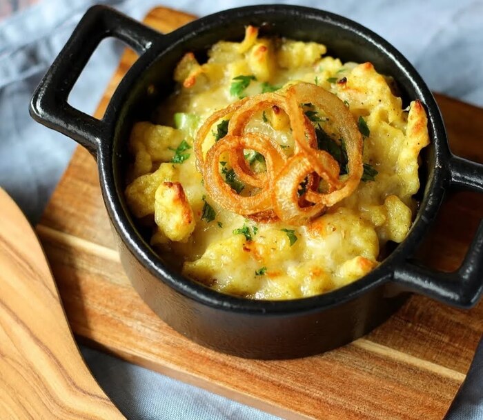 Он же Кесшпатцен, Кяспецле (и прочая немчура) — это простая и охрененно вкусная штука: яичные макароны, залитые вонючим сыром (чаще всего горный) и сверху обжаренным луком. Простой деревенский кайф, который теперь подают даже в пафосных ресторанах с видом на Альпы.