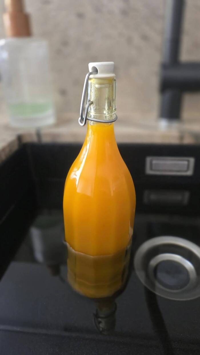 Всё это дело — мелко порубить, варить примерно час и пока соседи не начали вызывать МЧС, потом процедить, только осторожно, куркума очень пачкает поверхность — и вот он, Огненный Заебун.