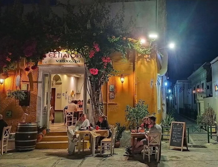 Отсюда вверх по главной лестнице Кали Страта — настоящее средневековое испытание на выносливость. Наверху — Хора, не женщина, а верх города. Белёные дома, кривые вывески, лавки, кошки — романтика зашкаливает. Правда, сильно пахнет котами. 🫣