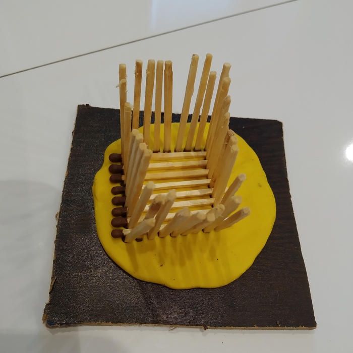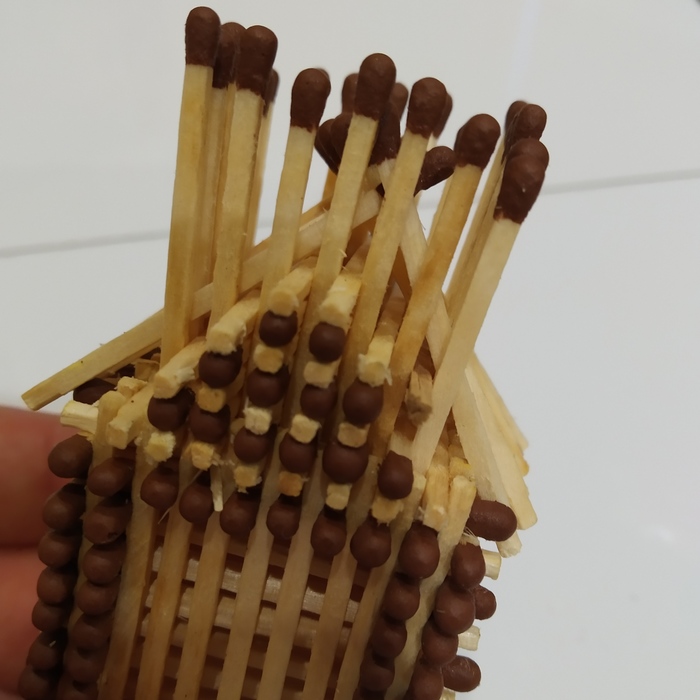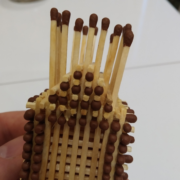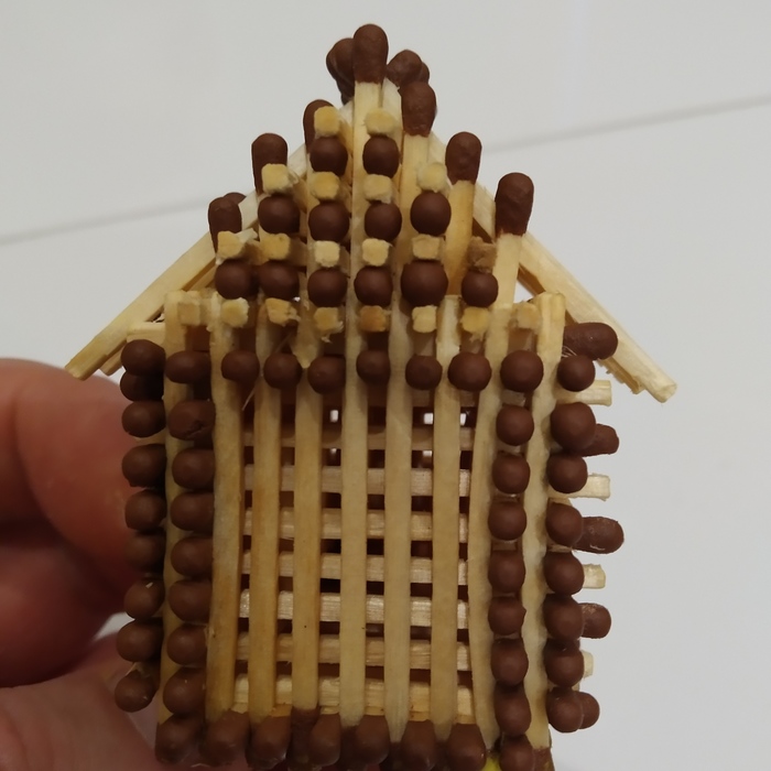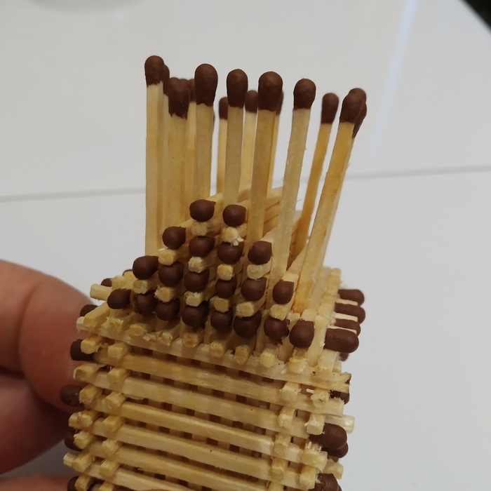 Слегка поджав усиливаем стены вторым рядом спичек