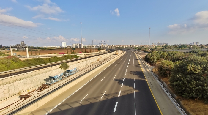 1. Трасса 431. 8.30 Утра. Голубые вагончики это строительство ж\д ветки Тель-Авив - Иерусалим.