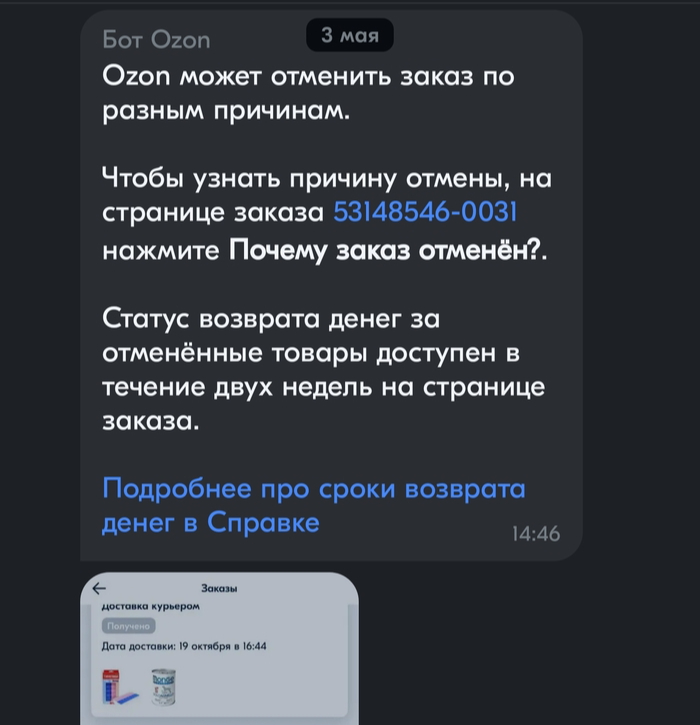 Заказал я на Озоне крем (Витапринол, не реклама, очень помогает для трескающихся рук, самое то для меня). Ничего обычного, даже не самый редкий товар который можно найти на Озоне, но тут-то я и ошибся. Первый заказ шел, шел да и не дошел до моего постамата. В причинах отмены все очень расплывчато, по шаблонному тексту, мол "Ошибки случаются, и вы не горюйте. Перезакажите, может поможет". Ладно, дубль два, верю на слово. Нет, дошло до "доставки в постамат", но тоже сбилось. Пробую еще раз, но уже в пвз. Для верности пишу в поддержку, и тут меня вынесло.