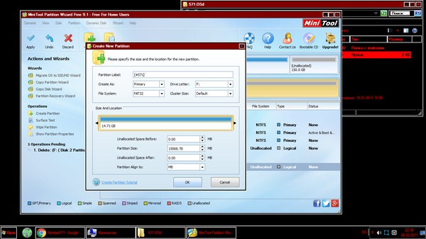 3)Наводим на новосозданный пустой раздел и нажимаем [NEW]. Оставляем столько сколько есть места. Выбираем Primary.