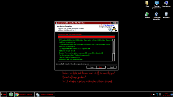 Здесь лично у меня возникла проблема с Юникодом и символы при загрузке ОС вообще не прописывались. Но я не вводил первый пароль, так что когда загрузка остановилась на определённой строке я нажал Enter и загрузка соответственно продолжилась до самого входа в сам дистрибутив. Теперь вписываете в username:root, а в password:123 (введённый вами пароль на последнем этапе).