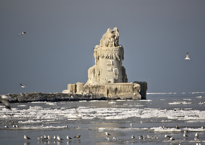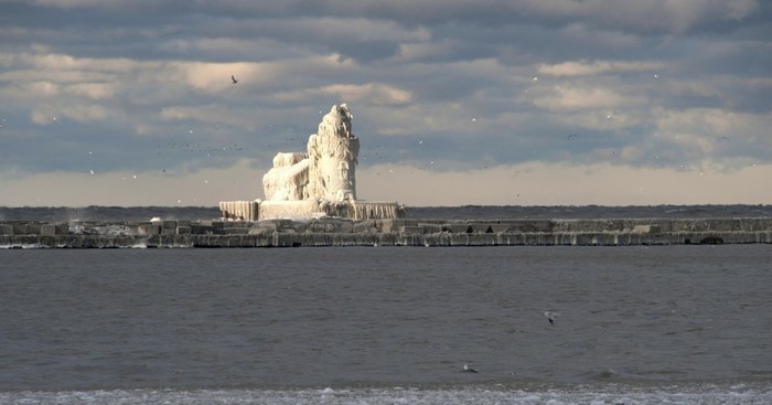 В Кливленде, штат Огайо, есть маяк, расположенный очень близко к озеру Эри, одному из Великих озер Среднего Запада, именно поэтому он представляет собой удивительное проявление суровой природы.