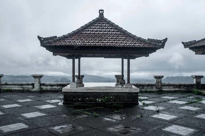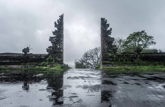 Сверху вздымаются взбитые ветром облака, а в пасмурный день (а таких много), рассеянные лучи солнечного света смешиваются с туманом, создавая случайную радугу.