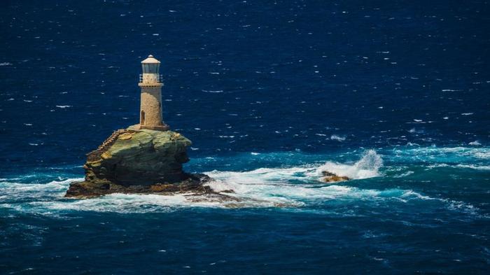 Этот маяк, расположенный на вершине скалы на греческом архипелаге мог бы служить пристанищем волшебника из фэнтезийного романа.
