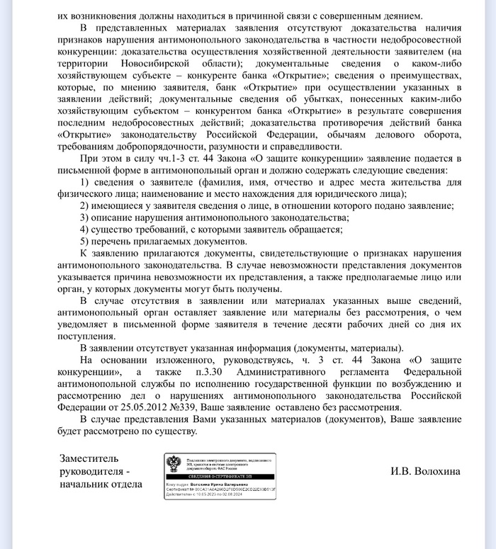 Так же, Банк России автоматом переслал обращение о изначальном отказе в приёме документов страховой не из их списка, до момента пока не написал письменное заявление, обращение в ЦБ и пост в соцсетях в Антимонопольную службу.