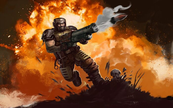 Во мне словно открылось второе дыхание. Наверное, я первый в мире пехотинец, который смог развить такую реакцию и скорость, не смотря на тяжеленный модернизированный дробовик в руках. Уклоняясь от вражеского огня, я беспрерывно прыгал, стрелял и подбирался к нему всё ближе. Выстрел за выстрелом от него отлетали кусочки металла и кровавой плоти.
