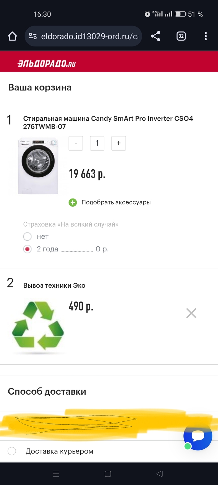 2 апреля этого года, дождавшись поступления бонусов за покупку телефона, я сделала в приложении Эльдорадо заказ на стиральную машину.